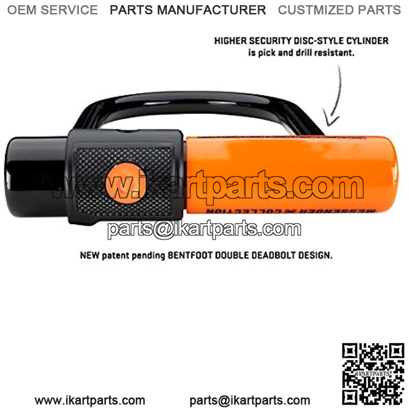 11mm hardened MAX-PERFORMANCE STEEL SHACKLEprovides lighter weight lock while maintaining the security level of Minis. WHEEL EXTENDER can secure either the front or back wheel while the Mini captures your frame and the immovable object. INCREASED SHACKLE DIMENSIONS allows for a wider range of lock up scenarios. NEW patent pending BENTFOOT DOUBLE DEADBOLT DESIGN. REINFORCED CUFF over crossbar and cylinder for additional security. HIGHER SECURITY DISC-STYLE CYLINDER is pick and drill resistant. NEW ROTATING DUST COVER with stopper plug. 2 STAINLESS STEEL KEYS with coiled wrist key chains. Key Safe Program.Product dimensions: 3.75?? x 6.5?? (9.5cm x 16.5cm).Product weight: 1.90 lbs (.86 kgs).
