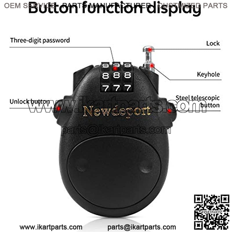 Newdeport Cable Lock: Bike Locks with Combinations +Helmet Lock Luggage Lock +Special Need bikesTravel Lock Stroller Lock Combo Mini Lock or Bike Lock with 29.5 Inch Retractable Steel Cable-Black