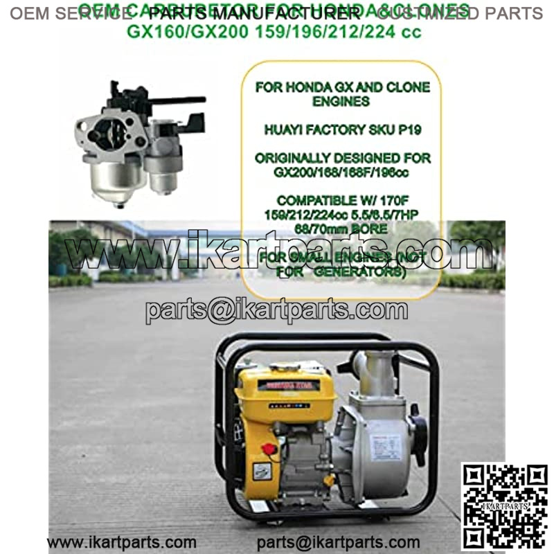 P19 Carburetor Kit OEM for Predator 212 cc Ct200u ex Bt200x Kt196 196cc 224cc Mb165 Mb200 6.5hp Mini Bike Snow Blower Pressure Washers 16100-ZH8-W61 for Honda GX200 Carburetor