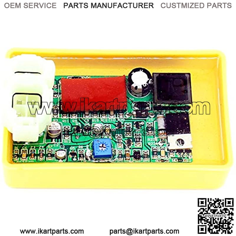 new CDI box, DC current, 6 pins with round corner connector plugs, has adjustable timing.Fits GY6 50cc – 125cc 150cc 200cc 250cc Scooters, ATVs, Go Karts, Mopeds, Dune Buggy, Quads and other Bikes. Fits GY6 Engine Kymco Agility People Sento 50 125 150. Compatible for DC GY6 engines and GY6 clone engines.Reliable and durable than the standard unit. This CDI box will eliminate the irritating rev-limiter that is keeping you restricted! This will also re-set your ignition advance curve for a better acceleration. Rotate clockwise, postpone the angle, rotate counterclockwise, advance the angle, adjust With a small phillips screwdriver.This CDI will fit almost all s, such as , Buyang, Coolsport, NST, BMX, Kazuma, AIM-EX, Baja, Panterra, Kymco, GILERA, HANGLONG, HAOJIN, HAOJUE, HONGZHOU, HUATIAN, JIAJUE, JIANSHE, JINLUN, JMSTAR, JONWAY, KAITONG, KEEWAY, KINROAD, KYMCO, LIFAN, LINGBEN, LINGTIAN, LINHAI, LINTEX, LONCIN, LONGJIA, MAWI, MEIDUO, MOTORRO, PIAGGIO, QINGQI, RHON, RIEJU, SACHS, SHINERA