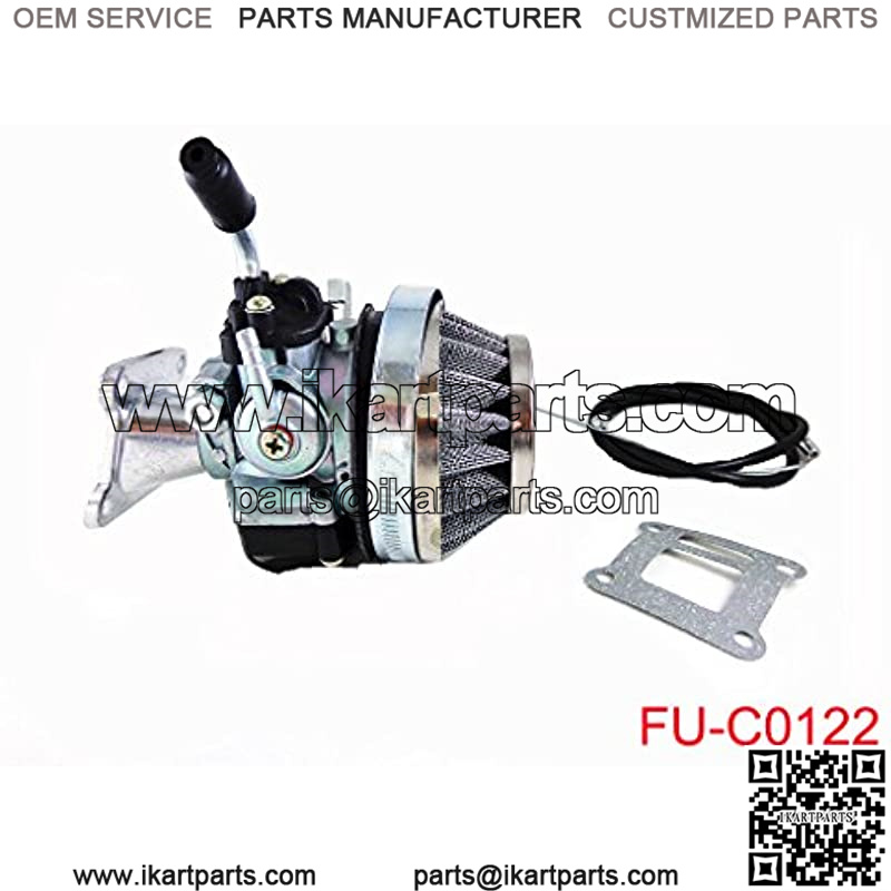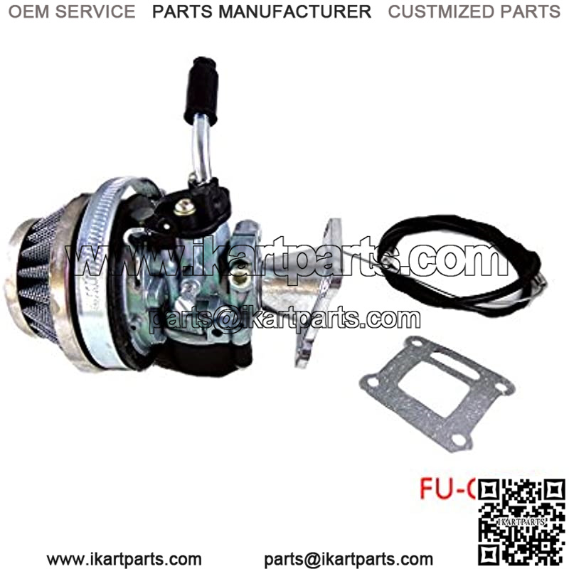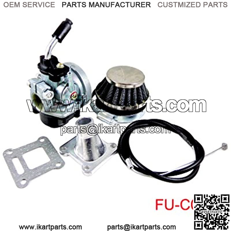 Includes large float carburetor, aluminum intake, performance air filter, reed gasket, and 31.5″ throttle cable