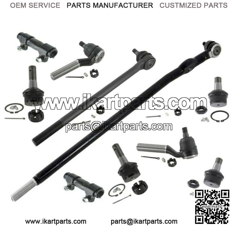 ,DS1072,1,FRONT LEFT INNER TIE ROD END,ES2727R,1,FRONT RIGHT OUTER TIE ROD END,ES2728L,1,FRONT LEFT OUTER TIE ROD END,ES2079S,2,FRONT LEFT RIGHT TIE ROD END ADJUSTING SLEEVE,K80026,2,FRONT LEFT RIGHT UPPER BALL JOINTS,K8435,2,FRONT LEFT RIGHT LOWER BALL JOINTS(w/4600 lb Axle),COMPATIBILITY CHART,