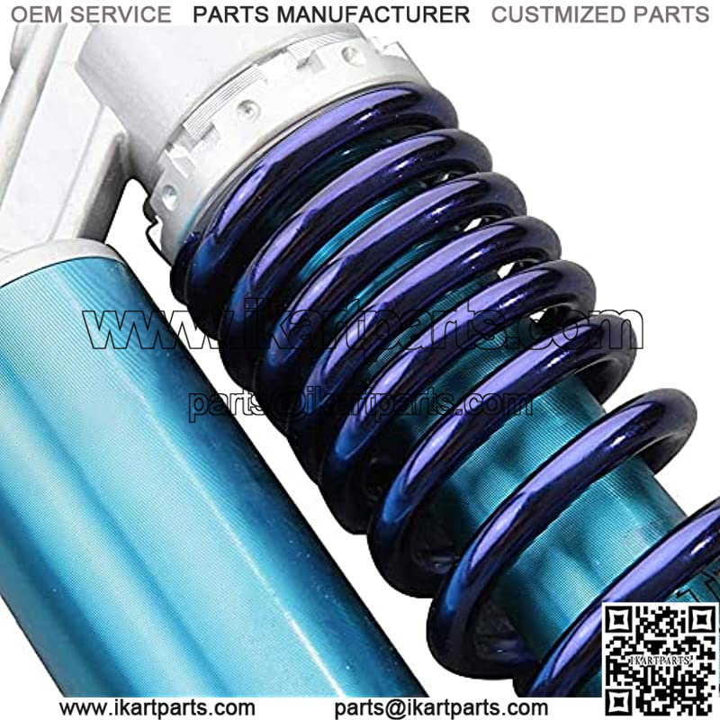 Specification: Color:Full black/blue+silver Dimension:Total Length: 400mm (15.75″) Length of Eye to Eye Core: 375mm (14.75″) Eye Diameter(with bushing): 12mm Eye Diameter(with bushing removed): 16mm Eye Thickness: 21mm Eye Maximum Tensile Strength: 2,000 Kgf Spring Thickness: 8mm Spring Width: 60mm Working Stroke: 68mm Spring Stiffness: 110 kg Maximum load: 300 kg (660 lbs) Air Reservoir: Adjustable Factory Air Pressure: 0.4 Mpa Maximum Air Pressure: 0.5 Mpa A complete pair RFY air gas shocks absorbers Easy to install,no Installation Instructions Pressure can be adjusted by springs or air (nitrogen) The damper and spring designed for long durability Length of the shock absorber can be compatible for within 10mm more than its own length, such as 375mm fits for motorcycle between 375mm and 3850mm. Fitment: