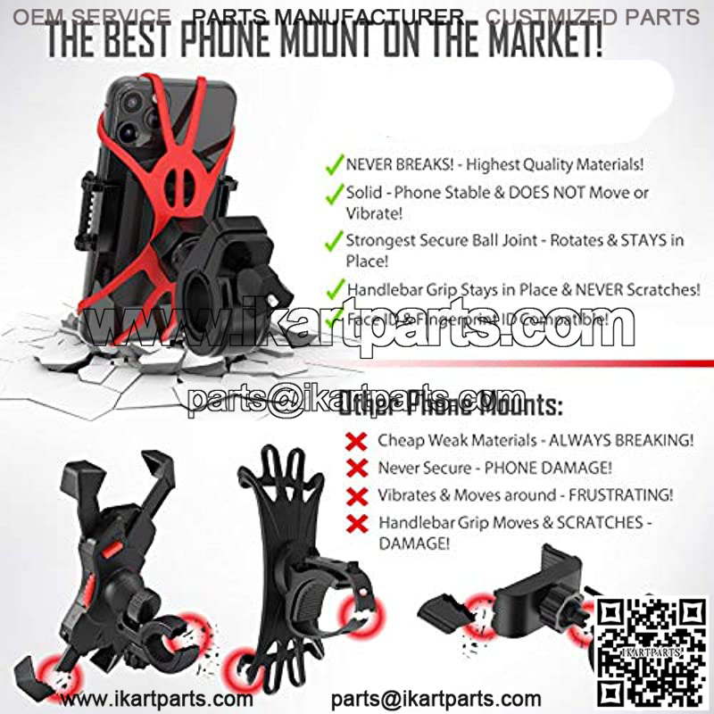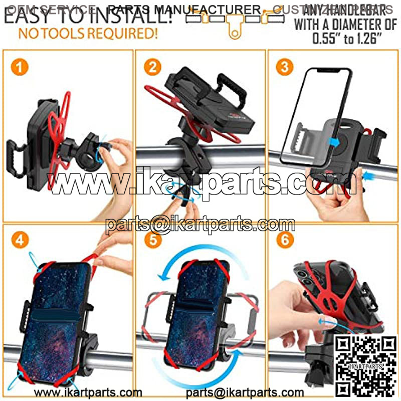Premium Bike Phone Mount Holder, Motorcycle Phone Mount, 6 Color Bands Included, Cell Phone Holder for Bike ?C Universal Any Phone or Handlebar, Bike Phone Holder, ATV – Tool Free Install