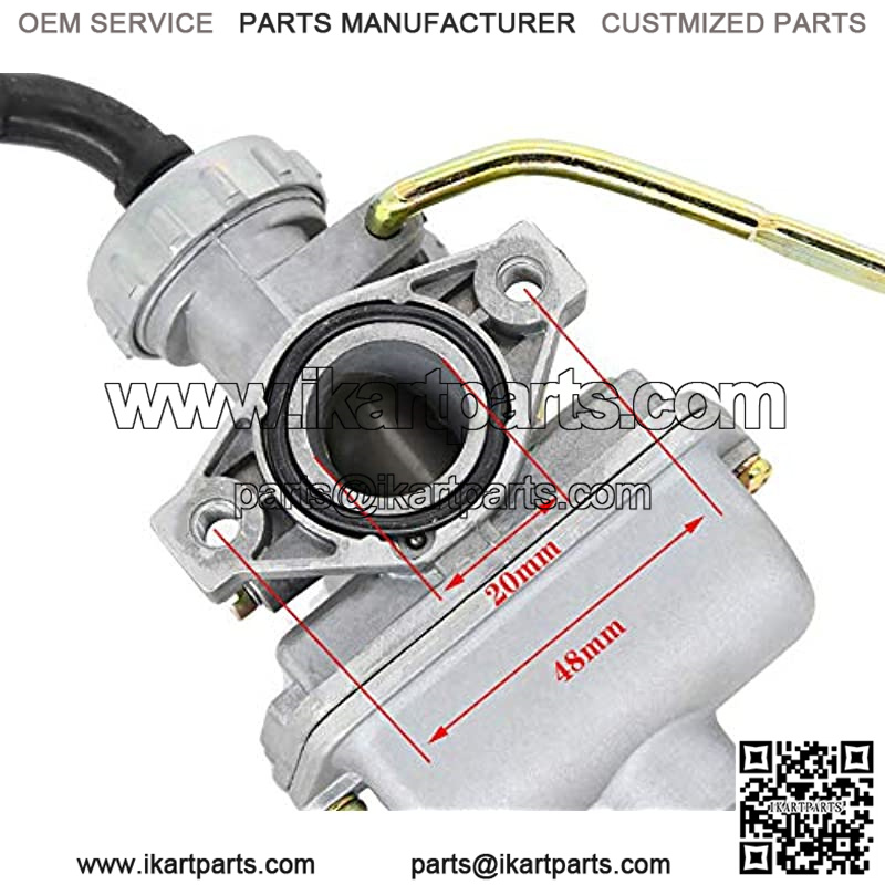 This PZ20 Carburetor Filter Gaskets 110 Atv Carburetor fits for: Compatible with 90cc Baja quad Compatible with 90cc Baja dirt bike Compatible with 90cc atv Compatible with 110cc Tao Tao atv Compatible with 110cc ssr pit bike Compatible with 110cc Coolster quad Compatible with 110cc Loncin ATV Compatible with 125cc atv Compatible with 125cc coolster Compatible with 2004-2009 CRF50 Compatible with 2011-2012 CRF50 Compatible with 2004-2009 CRF80F Compatible with 2011-2013 CRF80F Compatible with 2000-2001 XR50R Specification: Valve lever diameter: 5mm Intake Pipe Diameter: 20mm Bolt hole spacing: 48mm Air Filter Outer Diameter: 32mm Thumb Controller fit for 22mm handle bars, Installation diameter: 7/8″. PZ20 Carburetor Package Includes: 1x Carburetor 1 x gaskets intake manifold gaskets 1 x Thumb Throttle 1 x Air Filter 1 x Fuel Filter 1 x Inlet Pipe Manifold you will get as pictured Please check this PZ20 Carburetor Filter Gaskets 110 Atv Carburetor, Your old carburetor needs to look like the same with our pictures to replace it!