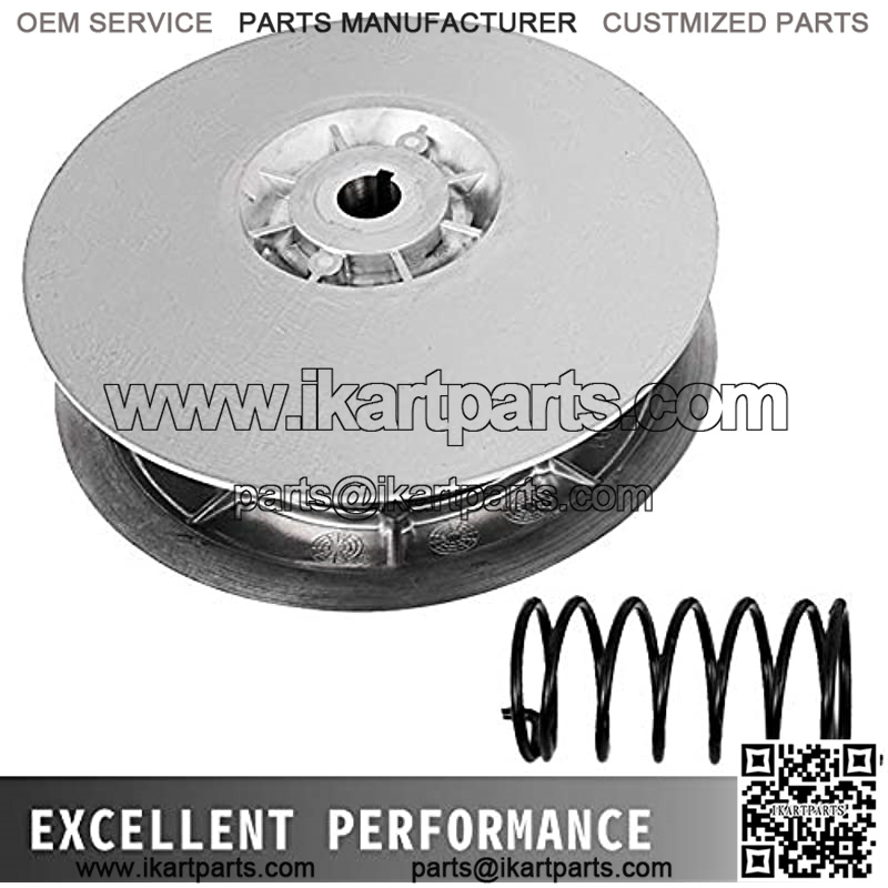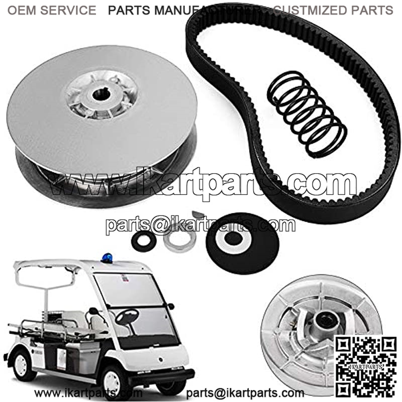 Attractive Metal Surface: The driver clutch has a stunning appearance, and with metal finished surface, which can make it more wearable and sturdy in its quality. Good Performance: This golf cart clutch is an important part of the car. It can avoids the overload of the transmission system, reduce the impact of torsional vibration, ensure the smooth start of the car, and extend the gear life.mpact of torsional vibration, ensure the smooth start of the car, and extend the gear life. Easy to Install: To use this Yamaha driver clutch, you need to use a clutch puller tool for helping you remove the current clutch, and as it is bolt-on assembly, so you don’t need weight link kit or pins for installation. Full-Set Equpment: The golf cart clutch including the fixed sheave, sliding sheave, spring, spring seat, ramp shoes, woodruff key, nut, spacer, washers and cotter pin, and a new drive belt. Widely Fitment: Our club car drive clutch fits the Yamaha golf carts models like G2, G8, G9, G14, G16, G20, G21, G22. It also the perfect match for golf carts from the years 1985 – 1992.