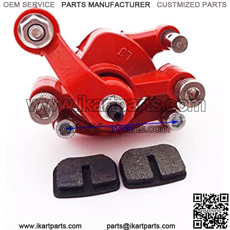 Fitment: Red Rear Right Side Disk Disc Brake Caliper + Spare Pads For 2 Stroke 43cc 47cc 49cc Engine Chinese Mini Pocket Dirt Bike Scooter Minimoto.