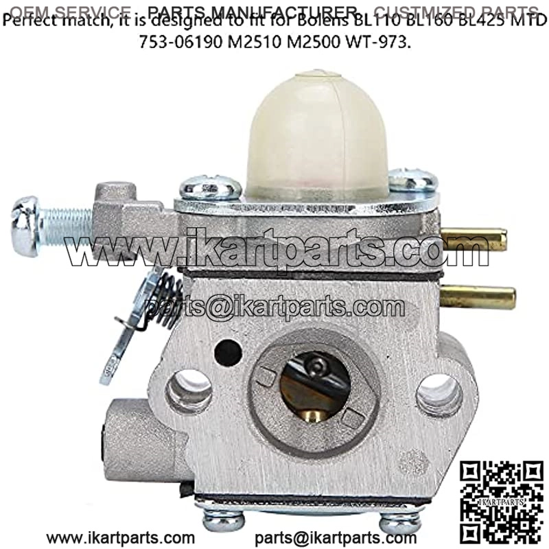 Para mantener el equipo de su m??quina funcionando a un mayor rendimiento.Combinaci??n perfecta, est?? dise ado para adaptarse a BL110 BL160 BL425 753-06190 M2510 M2500 WT-973.Hecho de material met??lico de alta calidad, no es f??cil de da ar y duradero en uso.F??cil instalaci??n y reemplazo, el anterior se puede reemplazar directamente.Accesorios de reemplazo de carburador confiables con alta confiabilidad.Funci??n: 1. Combinaci??n perfecta, est?? dise ado para adaptarse a BL110 BL160 BL425 753-06190 M2510 M2500 WT-973. 2. Accesorios de reemplazo de carburador confiables con alta confiabilidad. 3. Para mantener el equipo de su m??quina funcionando a un mayor rendimiento. 4. Hecho de material met??lico de alta calidad, no se da a f??cilmente y es duradero. 5. F??cil instalaci??n y reemplazo, el anterior se puede reemplazar directamente. Especificaci??n: Condici??n: 100% nuevo a Tipo de art??culo: Carburador Material: Metal Color: Como se muestra en la imagen Peso: Aprox.138g / 4.9oz a Aplicaci??n: acceso
