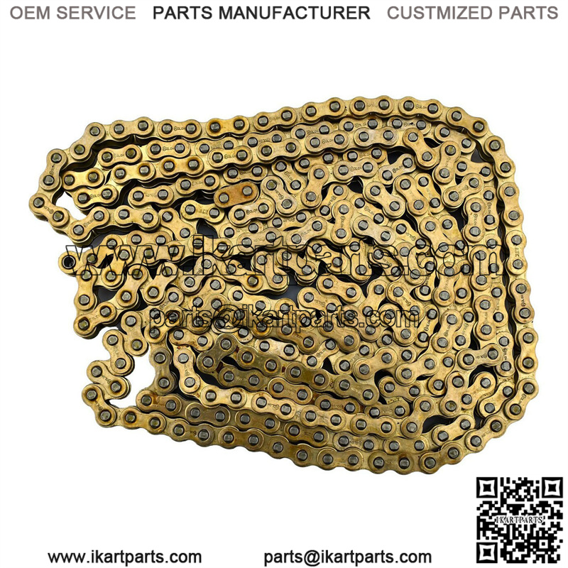 RLV Xtreme has made the ultimate in high performance kart chain. State-of-the-art materials combined with the latest in drive system technology has produced a chain that is lighter in weight for quicker acceleration and less rolling resistance while maintaining superior strength. Xtreme chain is pre-lubricated and pre-stretched which reduces the need for adjustments. It is held to tight tolerances to make it free rolling with less drag between bushing, pin and side bar. Side bars coated for superior wear resistance and less sprocket wear. Patent Pending bushings with their angular seams is another milestone in design and function. If you are not using Xtreme, Gold on Gold, you are not running your best.