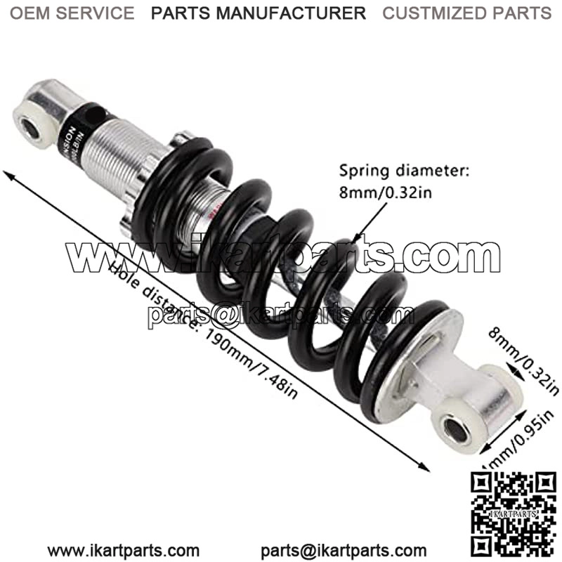 Convenient to Install: 190mm/7.48in hole distance, motorcycle shock absorber compatible with most vehicles. Easy to install and remove.