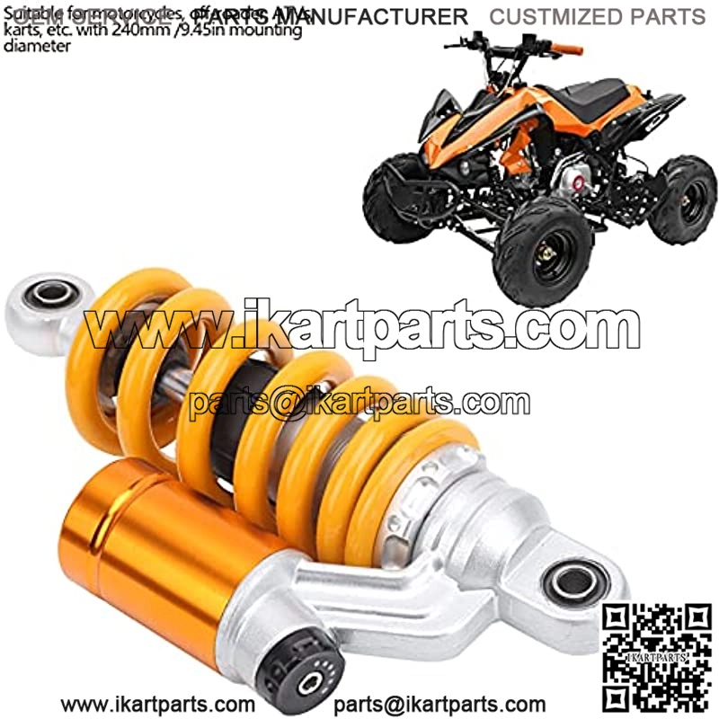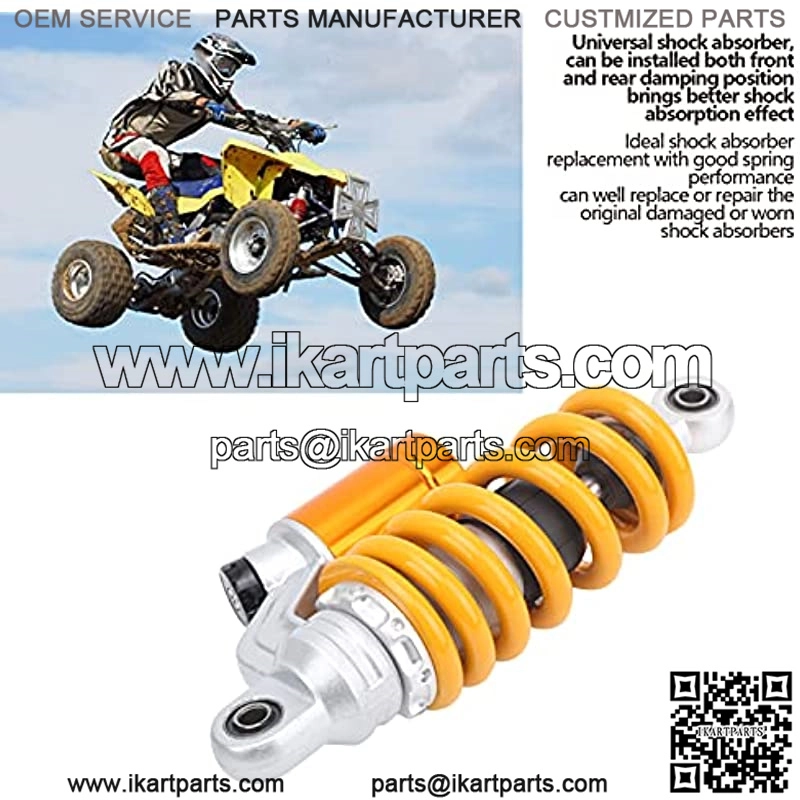??Excellent accessory??Rear shock absorber, with spring adjustment, it is suitable for quad bikes, some pit bikes, off road vehicles and other projects, professionally manufactured, reliable performance, can quickly absorb impact on the softest road, improve safet, use this shock damper to give you better ride quality.