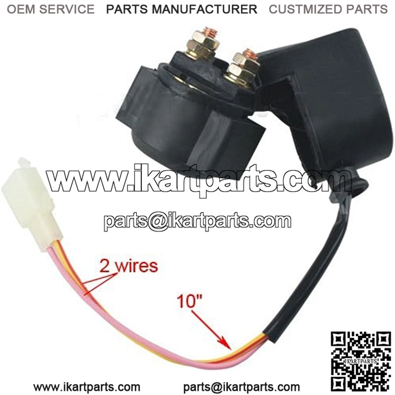 Starter Relay. Top Quality Guaranteed. Limited Time Offer!Starter Relay for 4-stroke 50cc-250cc ATVs, Dirt Bikes, Scooters, Go KartsWire length: 10″; 2 wires, 2 male pin;May fit Honda Clones 50cc, 70cc, 110cc, 125cc, 250cc etc. Also may fit brand with GY6 engine: Roketa, Sunl, Baja, Kazuma, Coolster, Peace Ice, Kazuma Carroll Stream Eagle, Panterra, Kymco, Redcat Tank Wildfire Xtreme Seaseng Qlink Yiben Jonway Jmstar, Vento etc. please check pictures and specifications for compatibility before placing orders.Thanks.; Dependable performance with competitive priceProduct descriptionStarter Relay for 4-stroke 50cc-250cc ATVs, Dirt Bikes, Scooters, Go Karts Condition: 100% Brand New Top Quality Starter Relay for 4-stroke 50cc-250cc ATVs, Dirt Bikes, Scooters, Go Karts May fit Honda Clones 50cc, 70cc, 110cc, 125cc, 250cc etc. Also may fit brand with GY6 engine: Roketa, Sunl, Baja, Kazuma, Coolster, Peace Ice, Kazuma Carroll Stream Eagle, Panterra, Kymco, Redcat Tank Wildfire Xtreme Seaseng