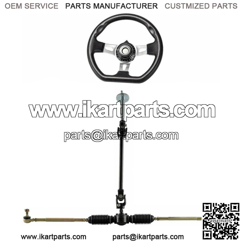 This is the 110 cc Go Kart steering wheel assembly set includes tie rod, steering rack and adjustable shaft.