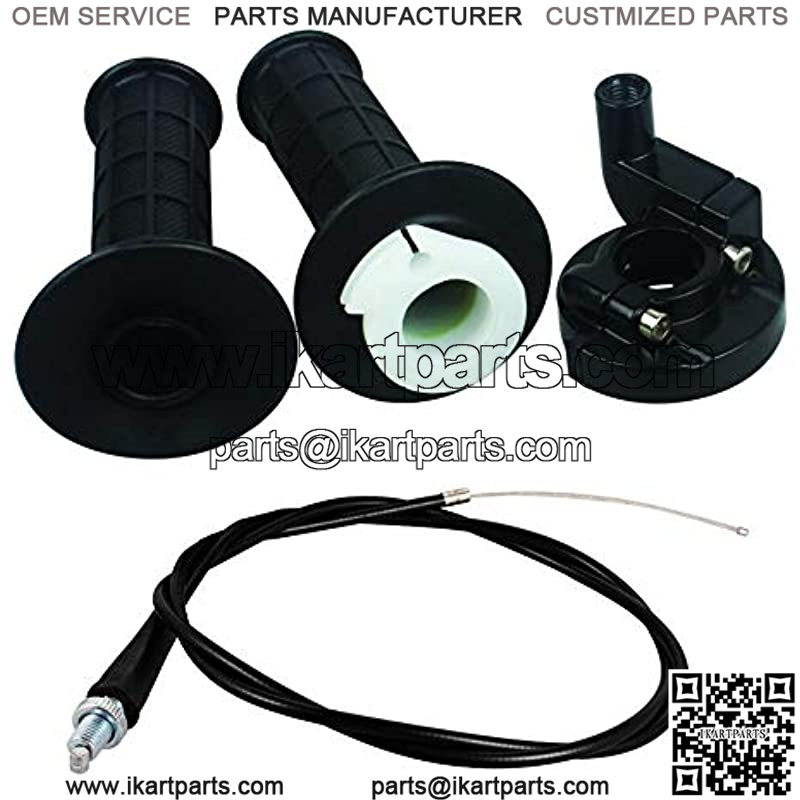 This handlebar replacement set includes throttle housing clamp, throtle cable and left hand grip, right hand grip, Throttle clamp is made of aluminium alloy,smooth surface, with 2 pcs of stainless steel screws