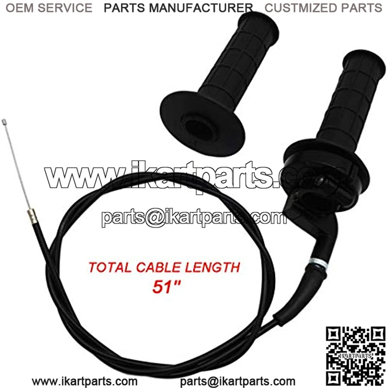 : * Cable Total Length(inner wire cable end to end): 51″ (130cm) * Housing Length: 46.45″ (118cm) * Cable Moving Length: 4.7 ” (12cm) Please look at the second picture for detail measurements. Package Included: 1 X Pair of Grips 1 x Throttle Housing Clamp 1 x Throttle Cable