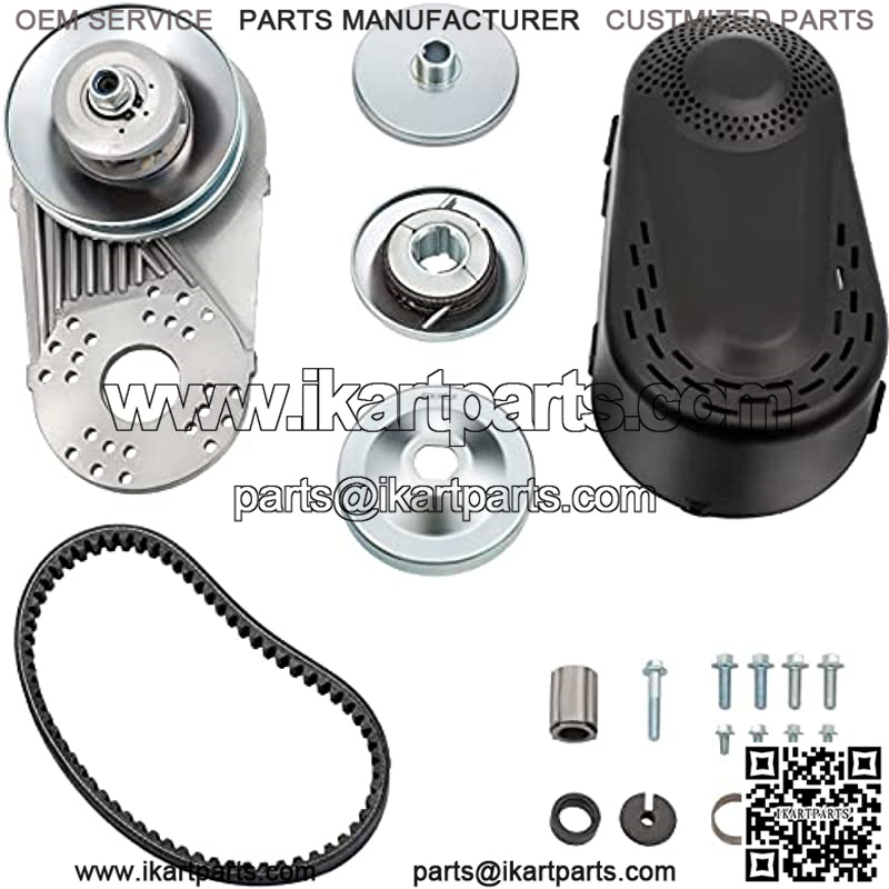 Full-Set Equipment: This kart torque converter kit includes the main parts: a 3/4″ driver pulley and a 5/8″ driven pulley,and includes other accessories like drive belt,plastic assy cover,aluminum mounting bracket plate,and full mounting hardware kit