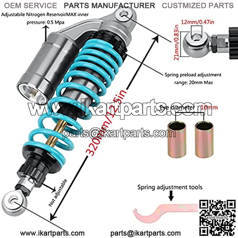 Universal 320mm Motorcycle Air Shock Absorbers Rear Suspension Compatible with Gokart Honda ATV CB Yamaha 12.5 Inch 2PCS (Blue)