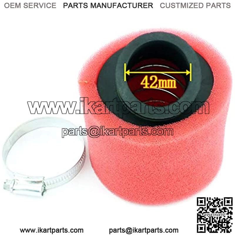 Brand new aftermarket performance air filter, angled neck, universal fits for most motorcycle air filter with 41mm / 42mm / 43mm engine inlet.