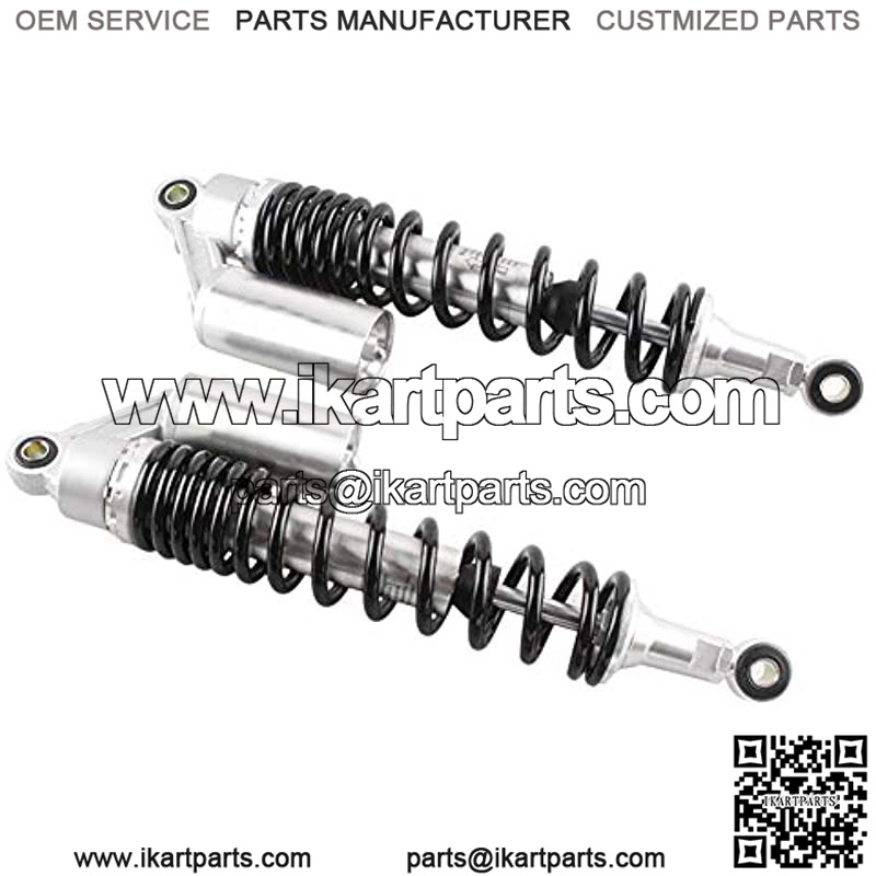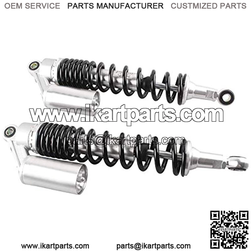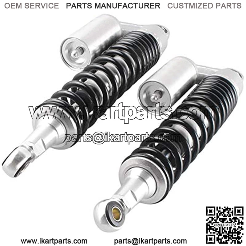 Compatibility: This shock absorber is an universal part. Works great on most 150cc-750cc street bike, dirt bike, dual sport, moped quad ATV, go kart, etc.Fits ALL quad vehicle and motorcycle with 400mm (15.75 inches) eye-to-eye length, we recommend to consult with your local dealers or measure the eye to eye length of your original shocks before purchase. Great replacement for your old shock absorbers, upgrading the exterior appearance of your vehicle.Each shock absorbers are already filled with gen gas in factory, providing better shock absorb performance. You can adjust the air reservoir to change the shock power.Made from high quality solid steel and aluminum alloy, very sturdy and durable. Each package contains 2 shock absorbers as picture shown.Super fast delivery, directly ship from USA.Fitment: Universal Fit. Work perfectly on most 150cc~750cc street bikes, Karting(Go kart), Scooters and Moped Quad (ATV) with shocks of 375mm eye to eye distance. Great choice for replacement, st