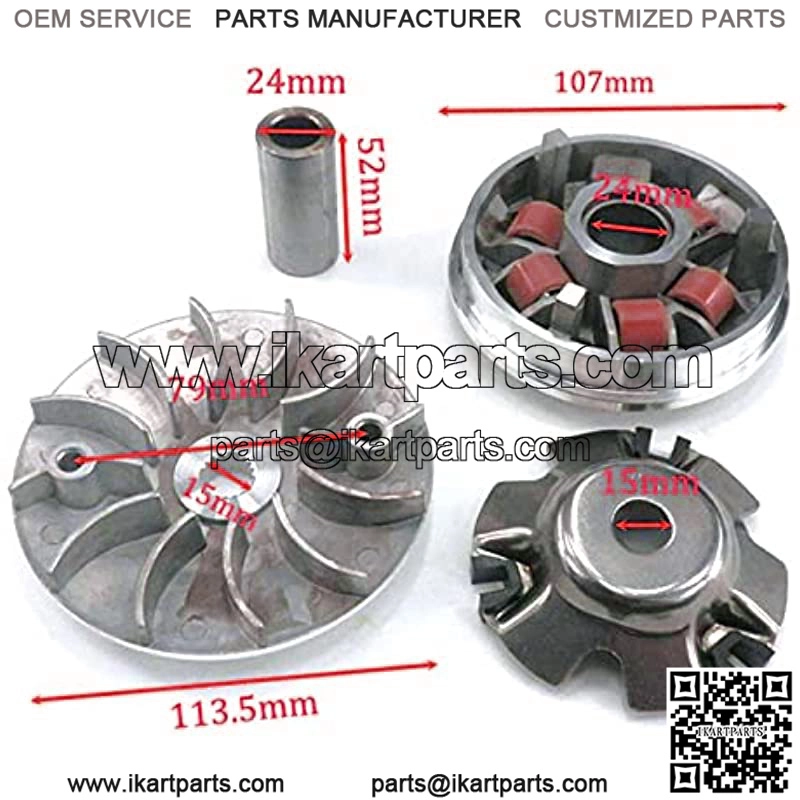 Nombre del modelo: GY6 125/150 4TTipo de material: METALTipo de art??culo: Variomat y partesAncho del art??culo: 10.7cminchDi??metro del art??culo: 1.5cminchAltura del art??culo: 5.2cminchLongitud del art??culo: 11.35cinchPeso del art??culo: 0.5kgCaracter??sticas especiales: FIT 125cc – 150ccNuevo conjunto de variadoresPara Scooters con 125cc – 150cc 4-Stroke GY6 157QMJ, 152QMI motoresIncluye todos los kits en la imagen.Especificaci??n–19 DIENTE,–18mm x 14 mm con peso de rodillo de 13GRAM- Endure Face de 15mm- rostro de unidad de 93.5m