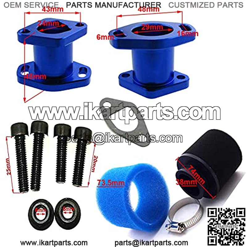 Dimension:Manifold Outlet Diameter: 26mm (22mm inner),Manifold Bolt Eye-Eye: 48mm,Manifold Bolt Diameter: 6.5mm,Air Filter Outlet Diameter: 38mm