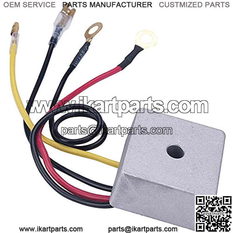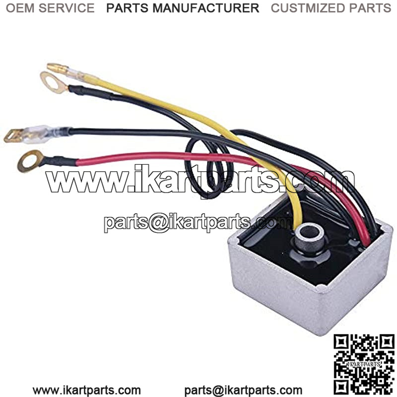 ??Vehicle Fitment??This Voltage Regulator Rectifier is Compatible with Club Car 1015777 102711201 Gas Golf Carts Karts, 1992 & Up Club Car Gas DS & Carryall Models. Replace Club Car Golf Cart 1027101-01 & 1015777-EPIGC113. 4 Wires. ??Replaces Club Car Part #??1015777 102711201, Replaces Stens: 435-199. ??Premium Qaulity??100% Brand New Voltage Regulator made with solid-state electronic components and highest grade lamination materials. Our wires are made from premuim thick and long copper wire. Achieves greater stability and reliability than ordinary brands. It will match even exceed OEM parts in compatibility and performance. ??High Performance??This rectifier has overheat protection, helps to dissipate excess voltage, prevents over-charging battery, improves heat sink and charging capabilities. It is WATERPROOF, silicone seal, the IP grade is IP65. ??Quality Assurance??4Tune Garage is a professional factory focus on provide high quality motorcycle parts at a fair price. We guarantee all products passed strict tests before selling on Amazon. Besides, we provide lifetime professional technical support and 24 MONTHS warranty for customers.